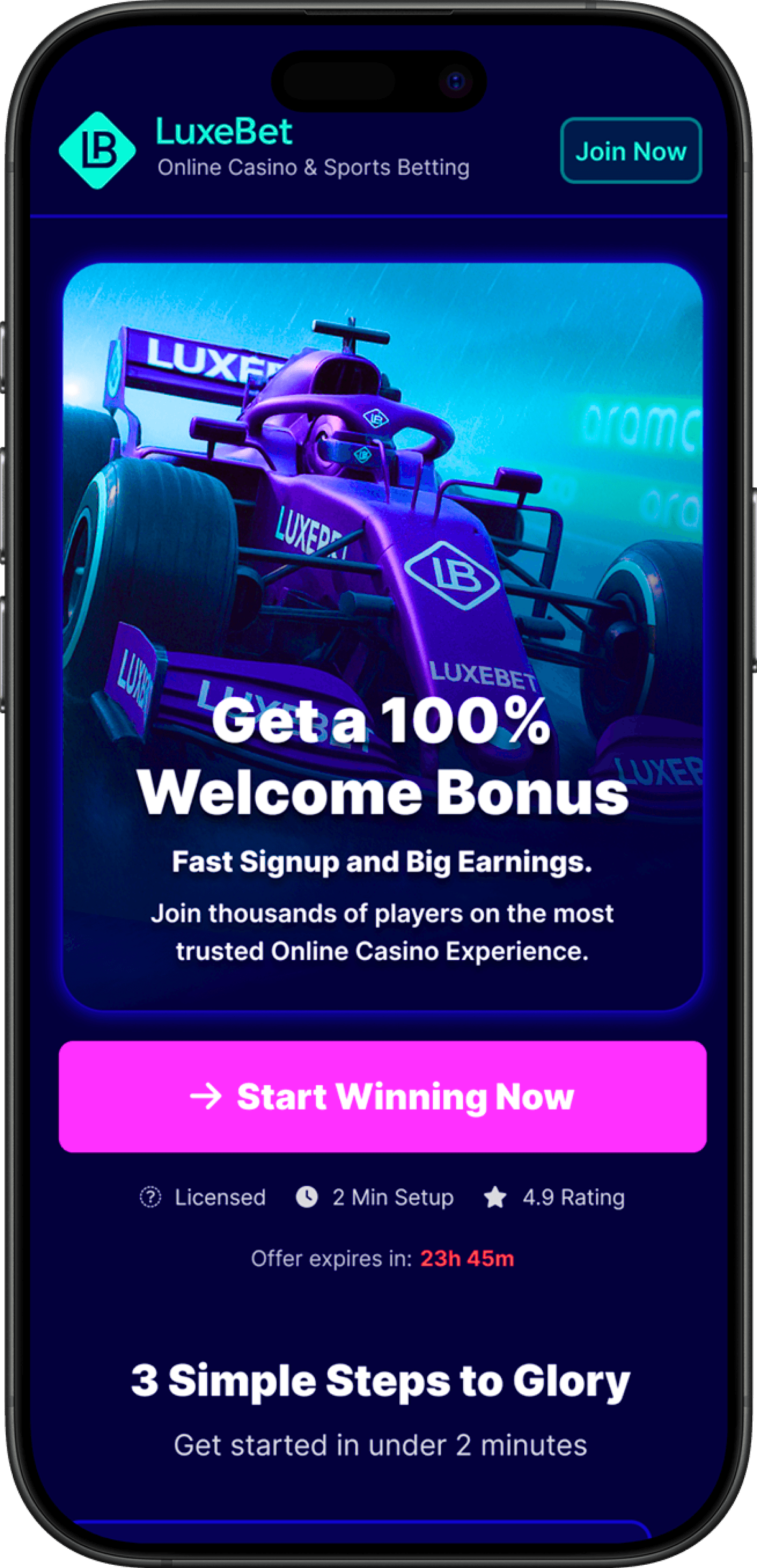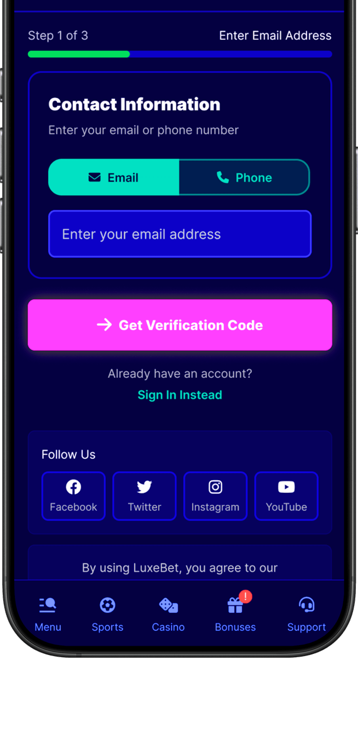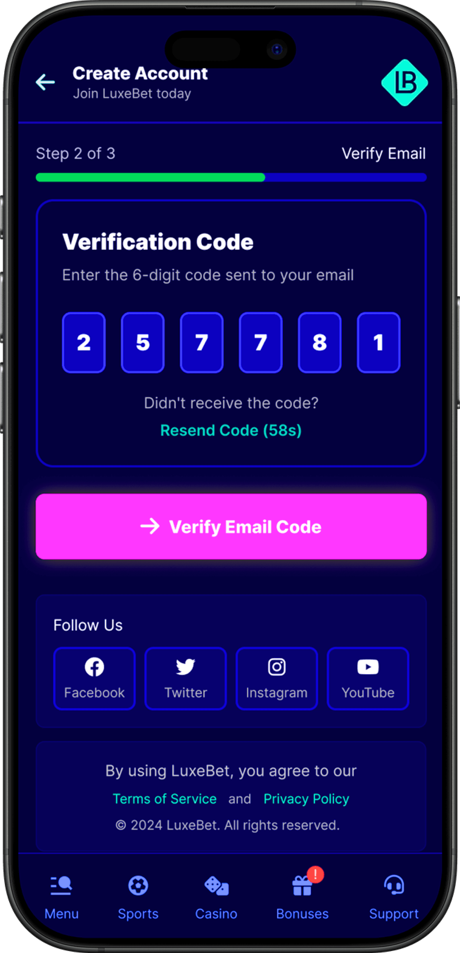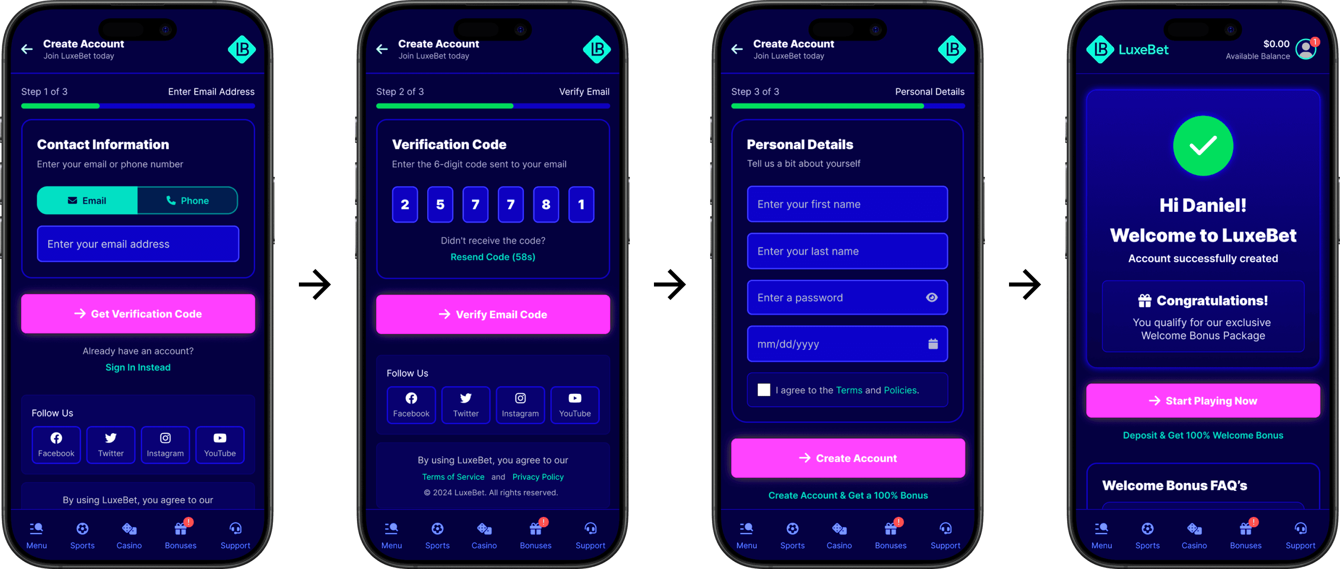 LuxeBet’s player signup flow was suffering from a 43% abandonment rate, caused by friction-heavy forms, legal-style consent language, and redundant verification steps. With roughly 15,000 new visitors per month, this friction translated into significant lost acquisition potential and wasted marketing spend.